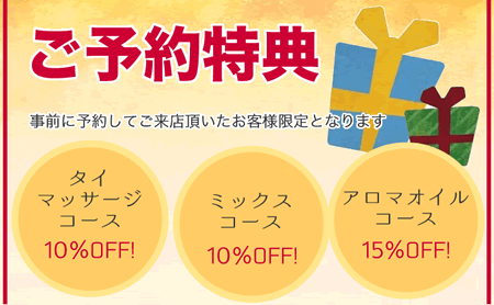 タイ古式マッサージ、アロマオイルマッサージなどのメインコースに追加できます!